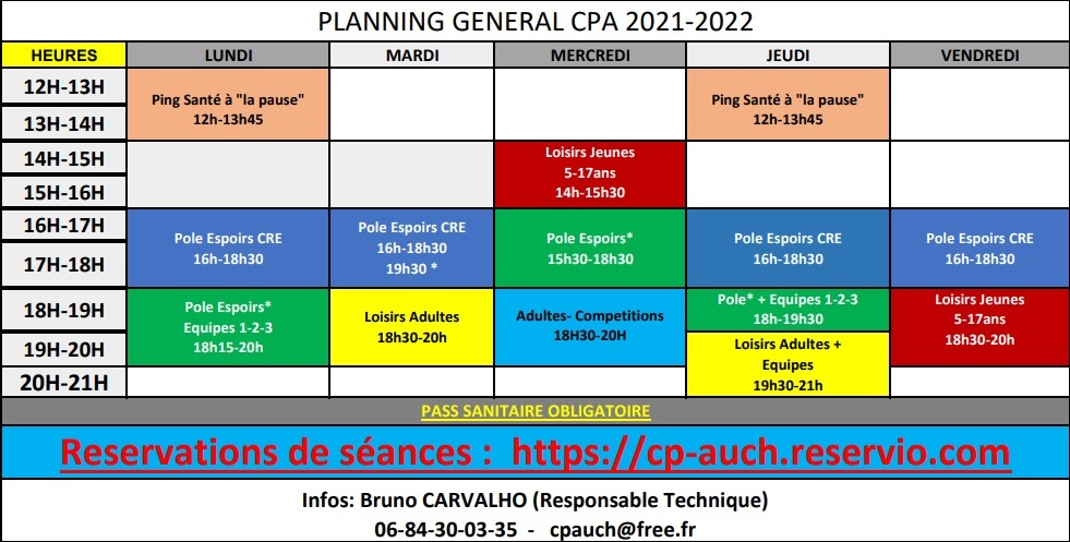 Pour accéder aux créneaux d’entraiment le PASS SANITAIRE sera OBLIGATOIRE ainsi qu’une réservation sur : https://cp-auch.reservio.com